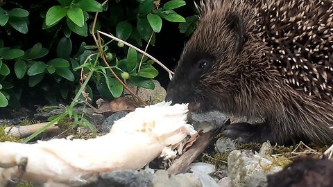 Hedgehog Enjoying a Piece of Chicken